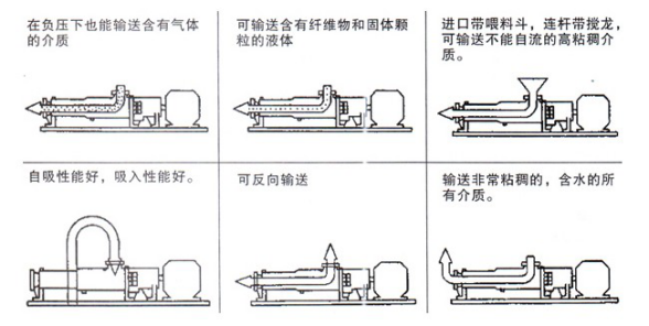 ·泵零件少,結構緊湊,體積小,維修簡便,轉子和定子是易損件,結構簡單,便于裝拆。傳動可采用聯軸器直接傳動,或采用三角帶、調速電機、變速箱等裝置變速。流量0.8-150m3/h,壓力0.4-1.2MPa或更高。